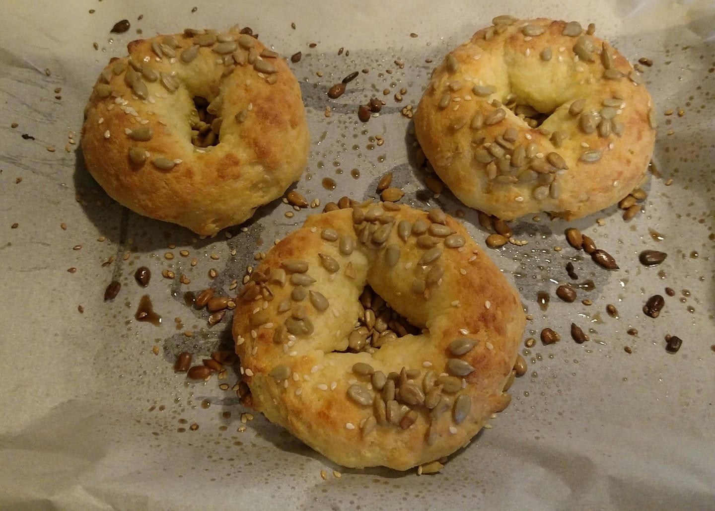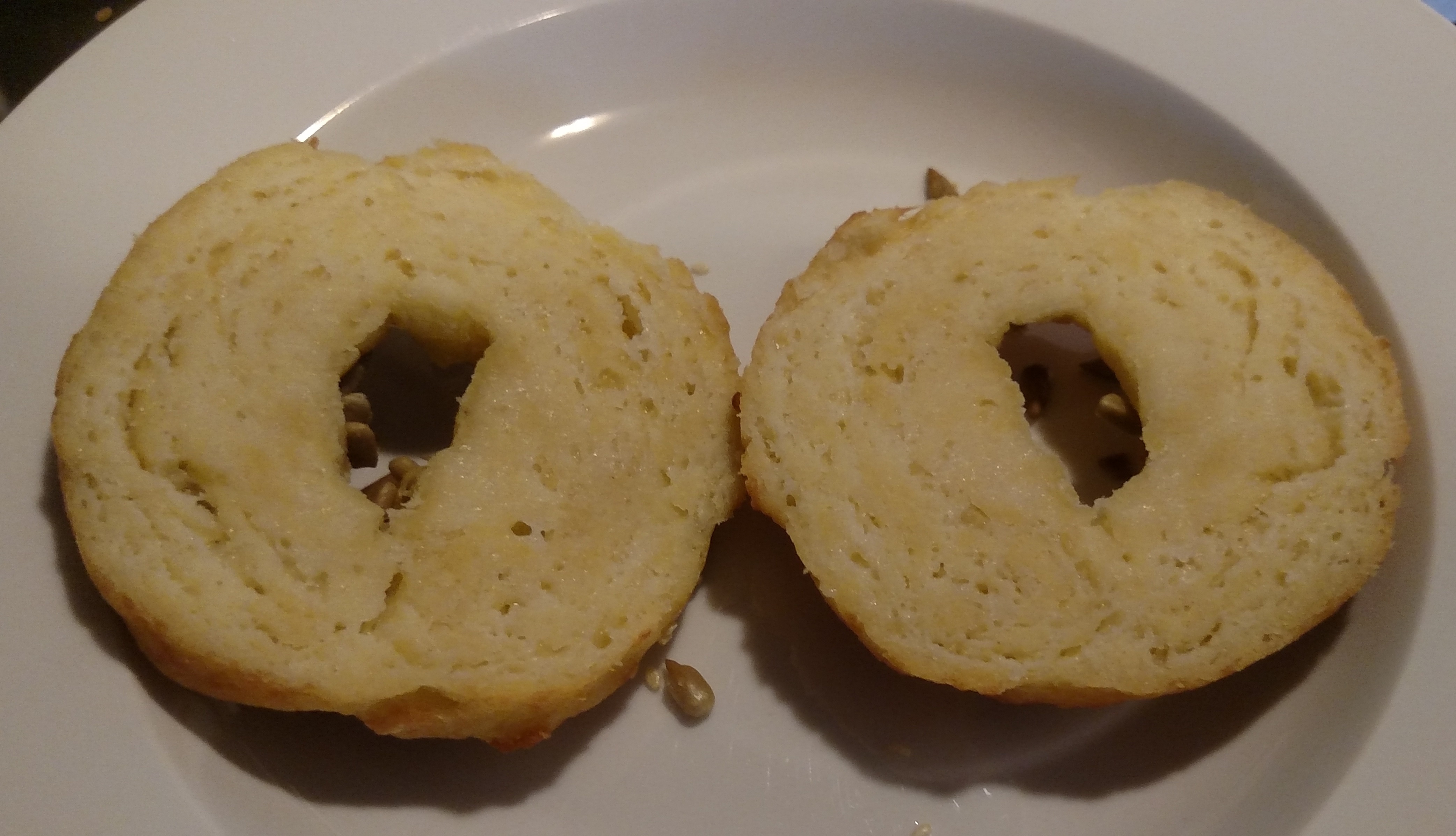 These are fantastic! Super easy to make and totally like real bagels, only mine were little. I made a batch of 9 and froze them for easy grab and go. My favourite is just with cream cheese and a little sugar-free raspberry jam. Also great for sandwiches.
