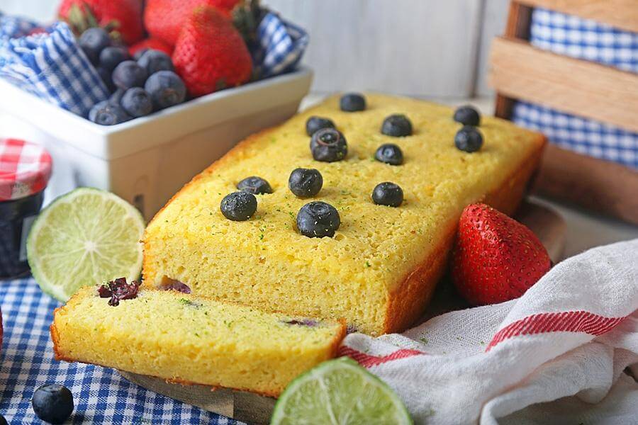 Well, blueberries and lime come together in this for a delicious sweet and tart combination that balances itself out with just the right amount of acidity. Each bite comes together just perfectly, leaving only a few fresh blueberries at the top for that extra kick of sweetness and the blueberry extract to bring the taste while mellowing out the flavor profile at the end. The cream cheese that we add to the cake seals the deal. It makes the cake SO moist that it almost falls apart in your mouth…who said everything has to be dry on keto?