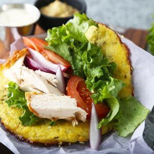 I recently started to get annoyed with the amount of carbs that are in wraps. I just don’t want to be stuffing an extra 8-12 carbs in my diet when it can be avoided, so I started experimenting. Through some horrible failures, I found a good recipe over at EmpoweredSustenance.