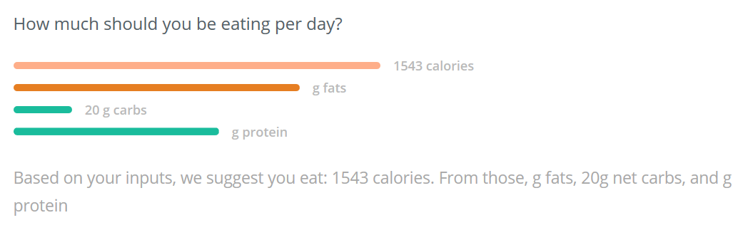 https://uploads.disquscdn.com/images/a23019ce4efeff988e971beef6275ff47934f98806f77edcecb19620043ab62b.png I’m afraid the new Keto Calculator isn’t working properly. The “How much should you be eating per day?” summary doesn’t display a number for fat grams and protein grams. The new interface looks great though!