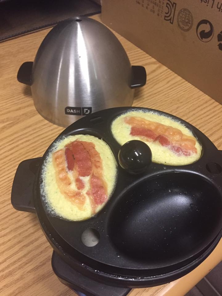 These are by far my favorite to make. You can switch it up and add herbs or spices of your choice, giving a different flavor each time. You could additionally add in new flavors (think pizza flavor, or chicken and avocado) to keep the variety coming. For me, the bacon was the hardest to get similar to the real thing. You can cook your bacon soft so that it’s easier to mold into the poaching pan.