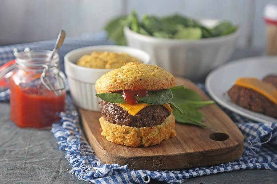 The bun itself is a bit odd tasting (from the psyllium husk would be my guess). It pairs VERY well with beef, in my opinion, and I don’t really need to add any extra spices or flavorings to it. But, if you’re the type that needs to disguise the flavor, feel free to add your favorite spices to mask the flavors – cumin, oregano, paprika, even curry!